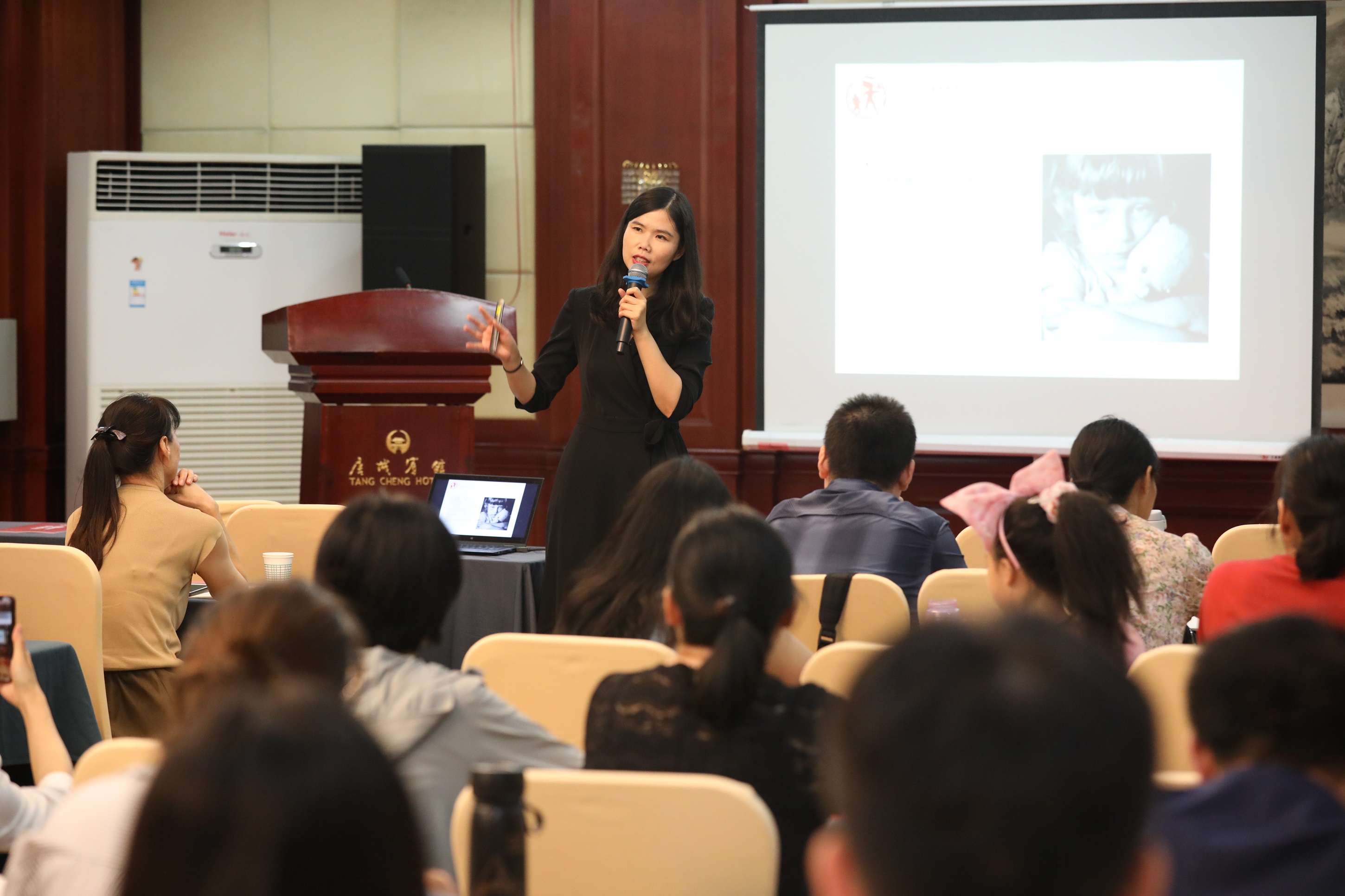 培训导师钟秉颖老师,是陕西师范大学社会工作硕士专业学位研究生校外合作导师及二级心理咨询师。她开场问学员两个问题:“回想你小时候,没有被家长打过的请举手”;“没有被家长骂过的请举手”。以此带领学员转换身份,从儿童的角度去了解儿童、探讨儿童权利的基本原则、学习识别管教和家暴,提醒传统的家庭教养方式总是和家暴纠缠在一起,带领学员从个案中学习咨询中的技巧。